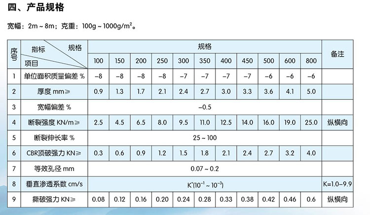 全稱: 短纖針刺土工布 規格參數: 纖度為6-12旦,長度為54-64mm
